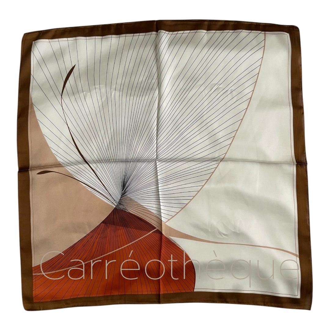 Carré 70x70cm motif abstrait minimaliste inspiré du centre d’une fleurs de lys beige marron