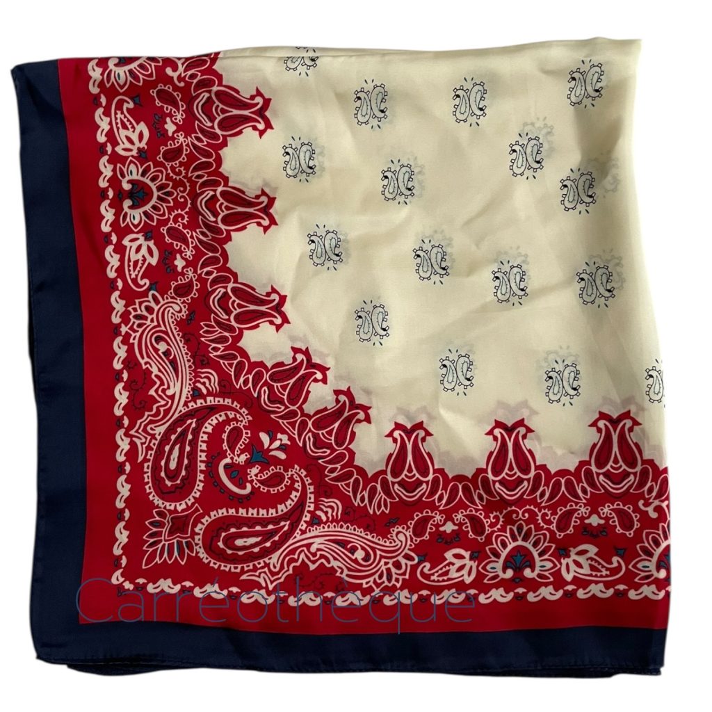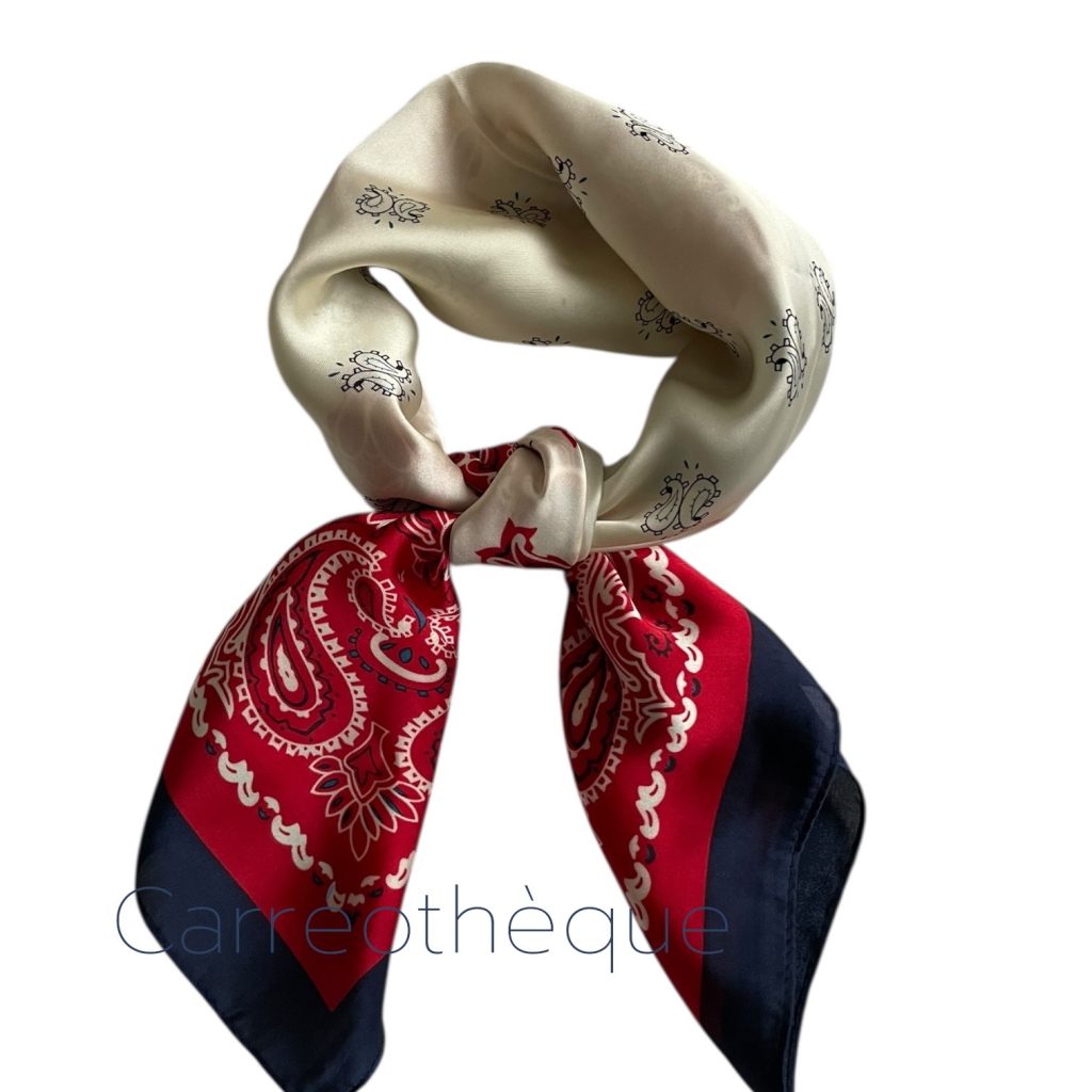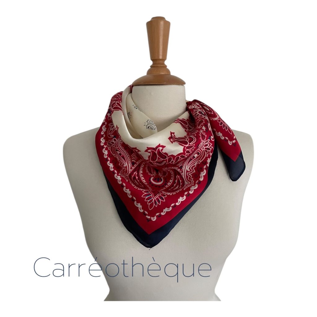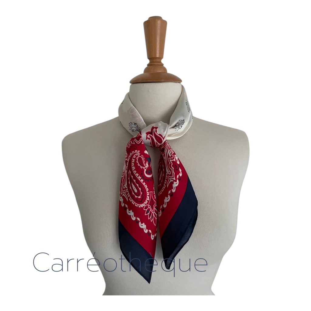 Carré 70 motif fin dessin bandana marine rouge crème intemporel mixte.