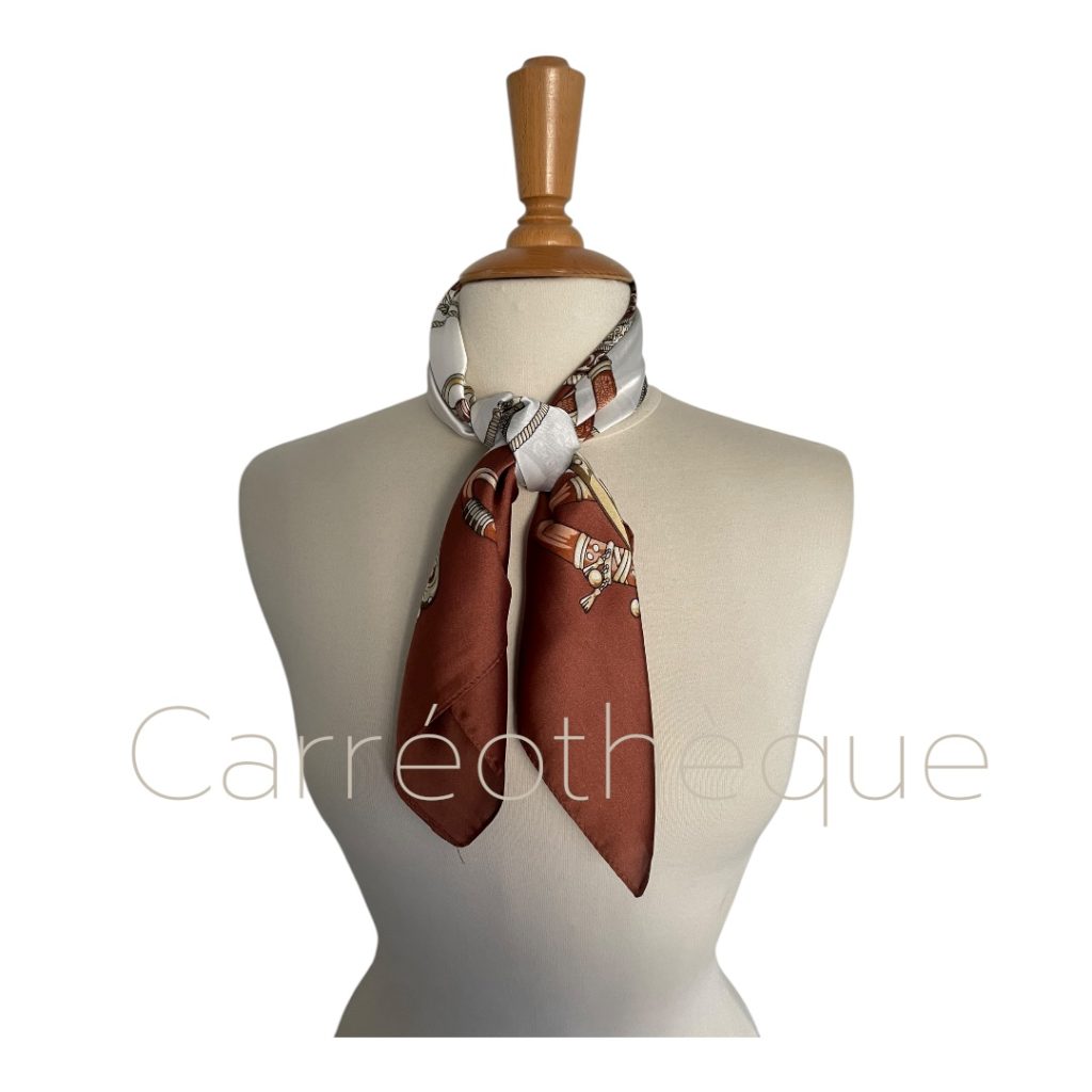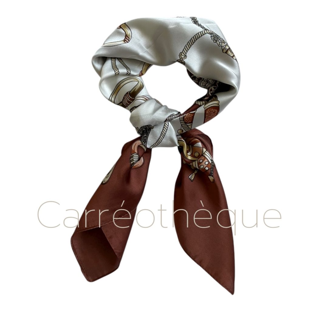 Carré 70 motif bijoux berbères tour marron, thème féminin intemporel.
