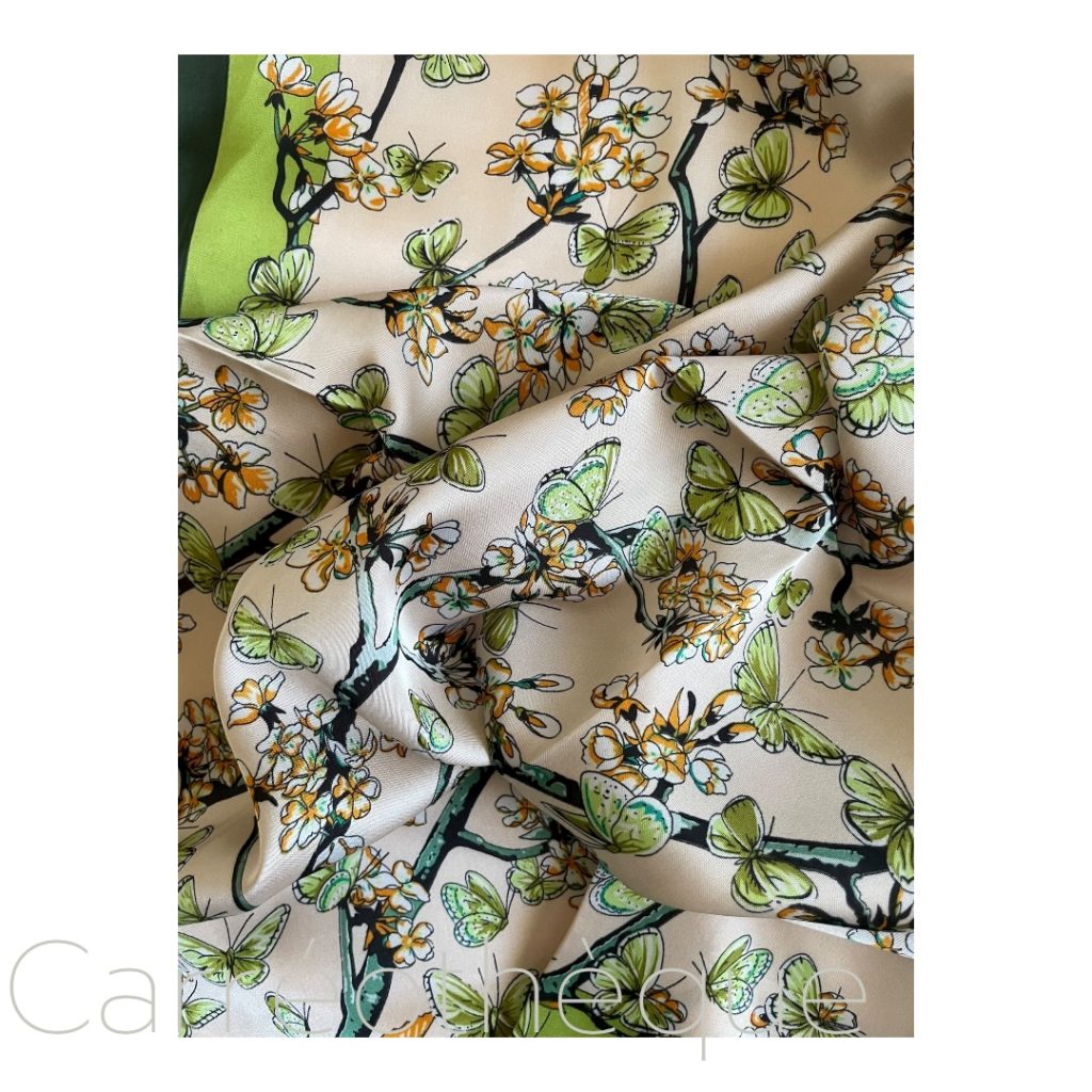 Carré 70 branches en fleurs et papillons