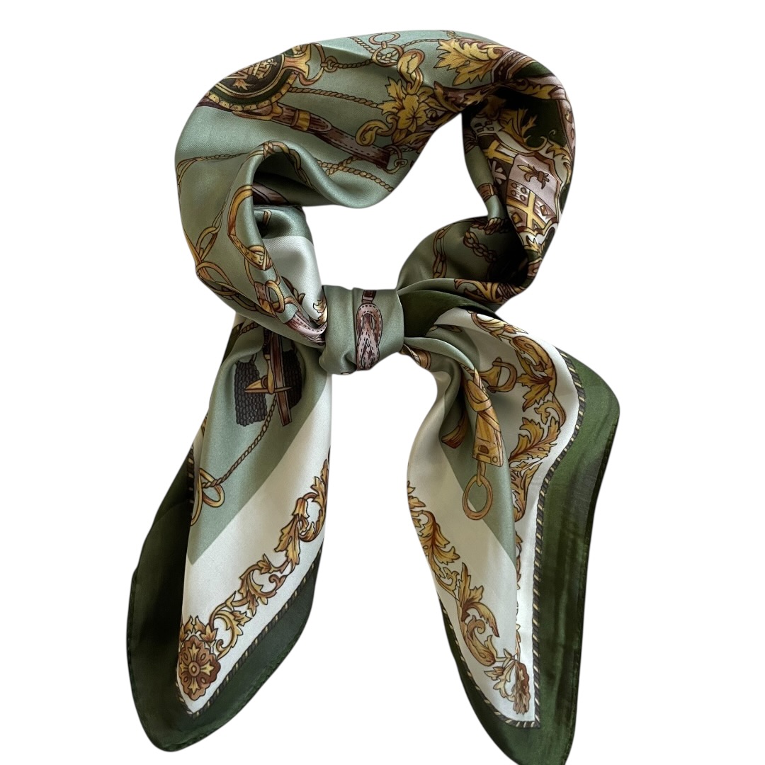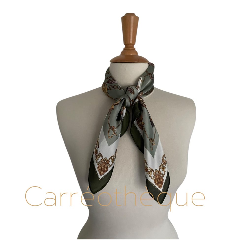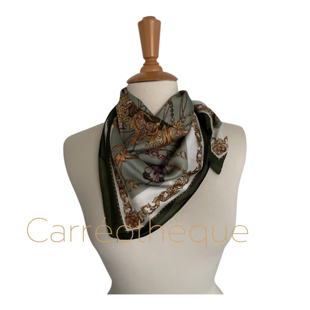Carré 70 brides équestres vert, classique élégant intemporel.