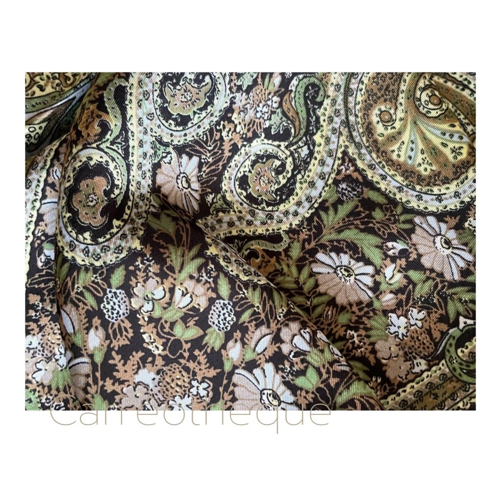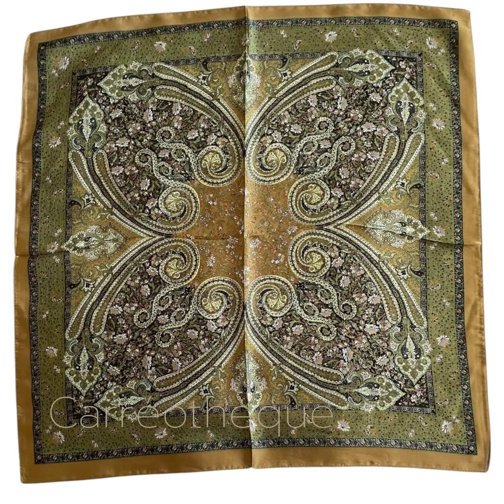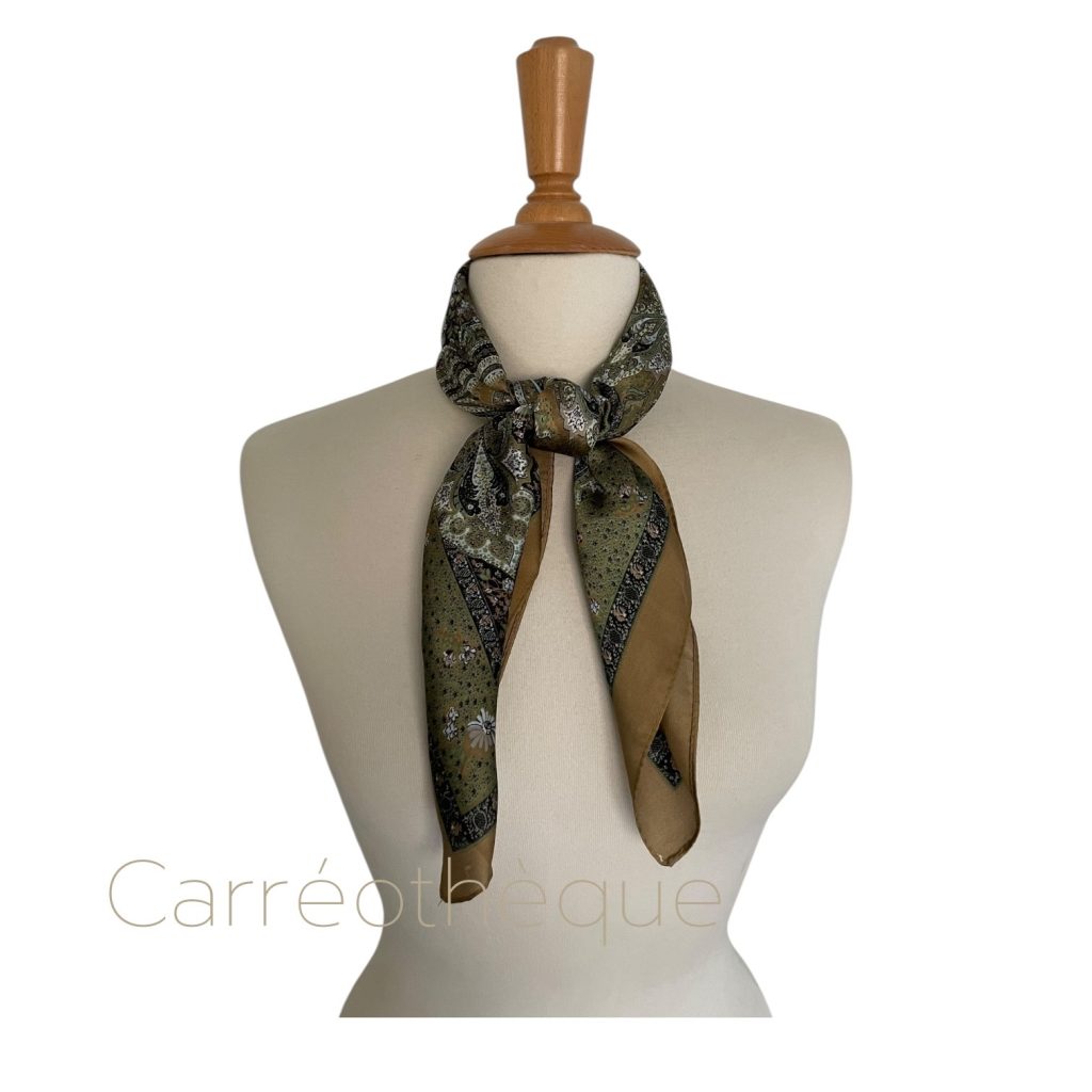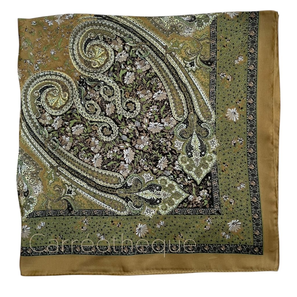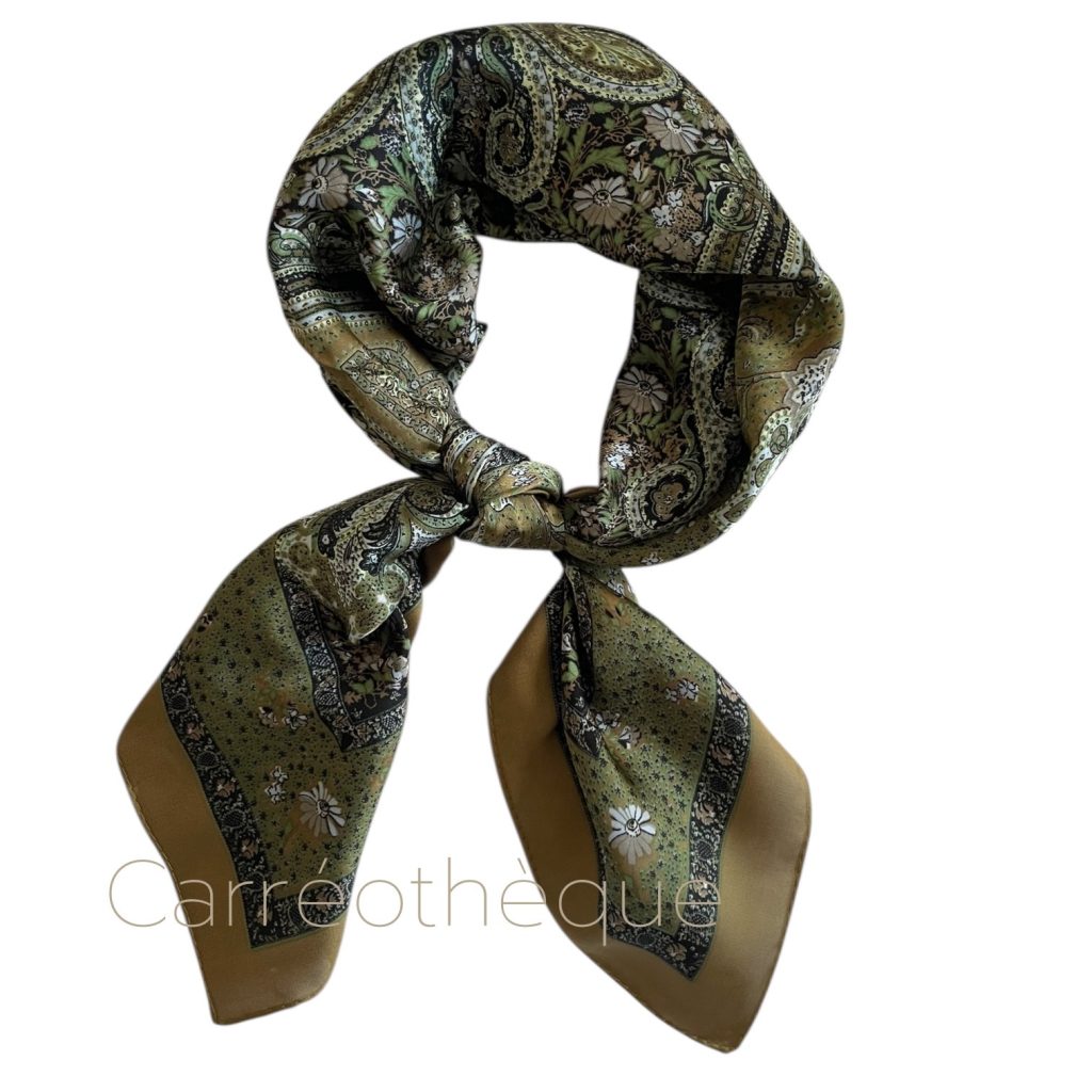 Carré 70 petit motif cachemire vert kaki élégant intemporel mixte.