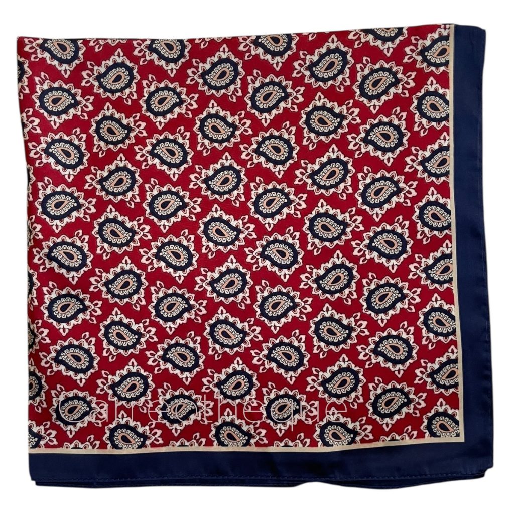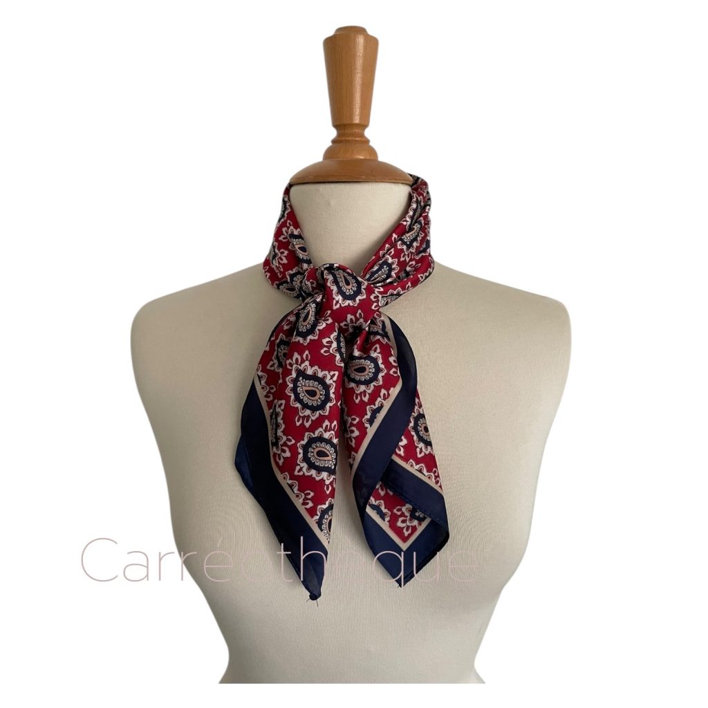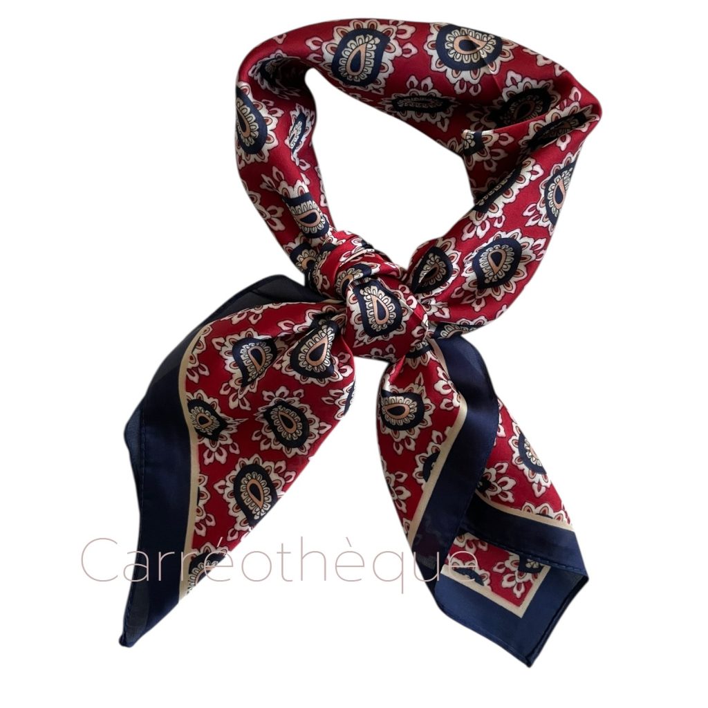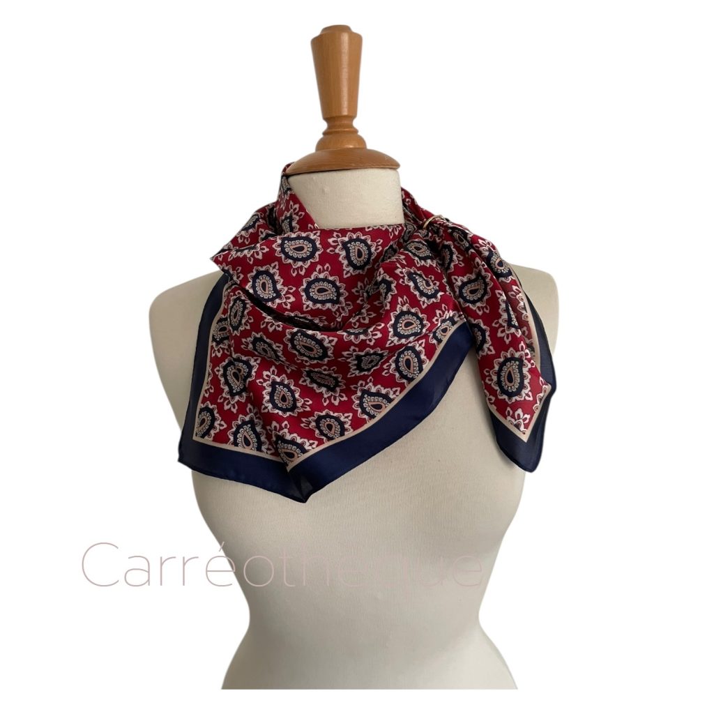 Carré 70 motif cachemire marine et rouge élégant intemporel mixte.