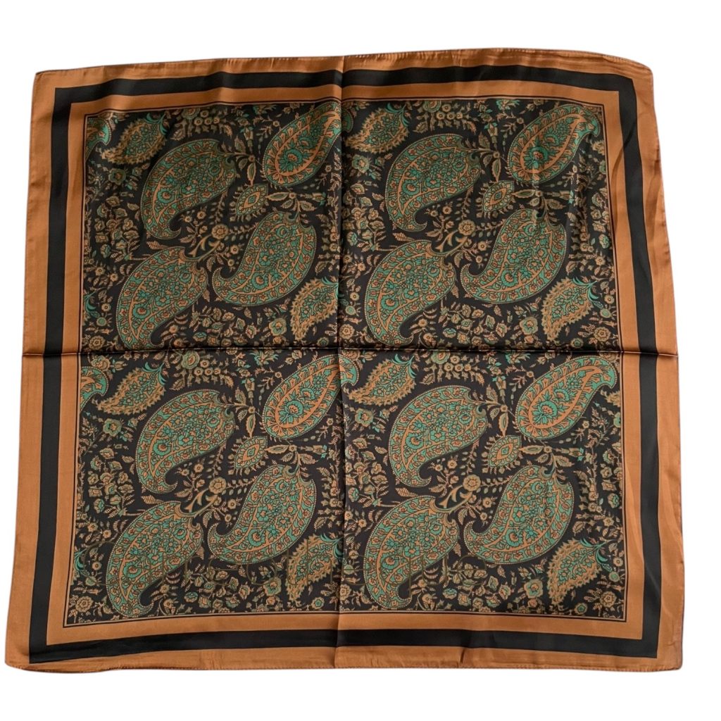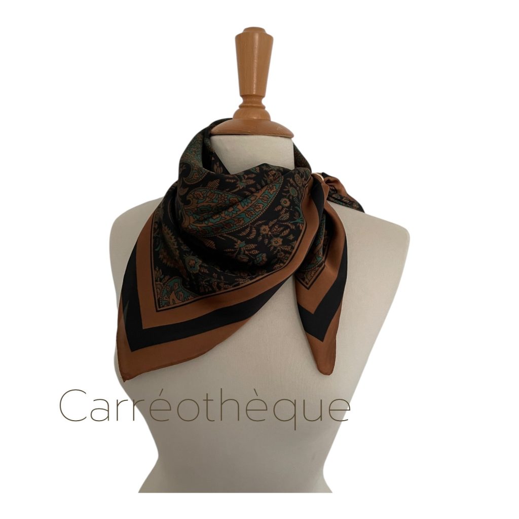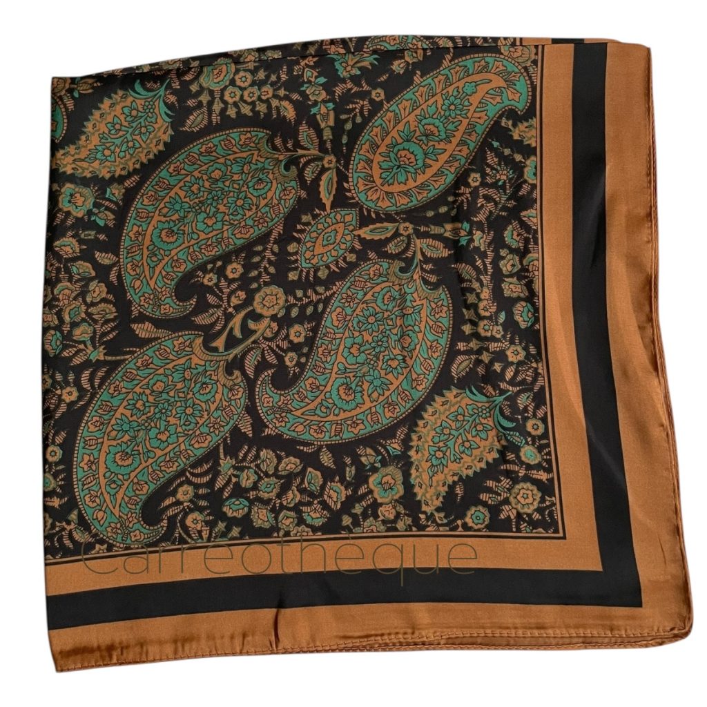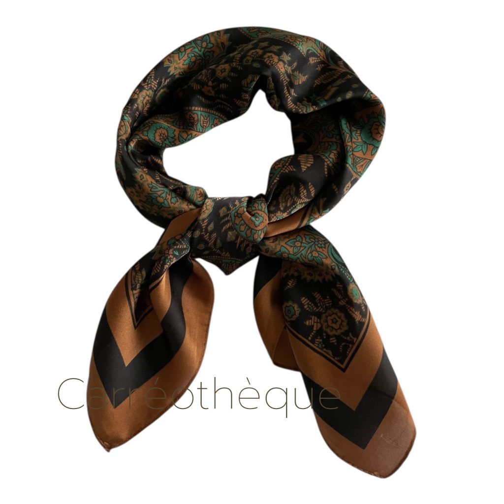 Carré 70 motif cachemire vert, noir et marron élégant intemporel mixte.