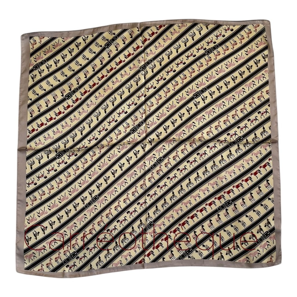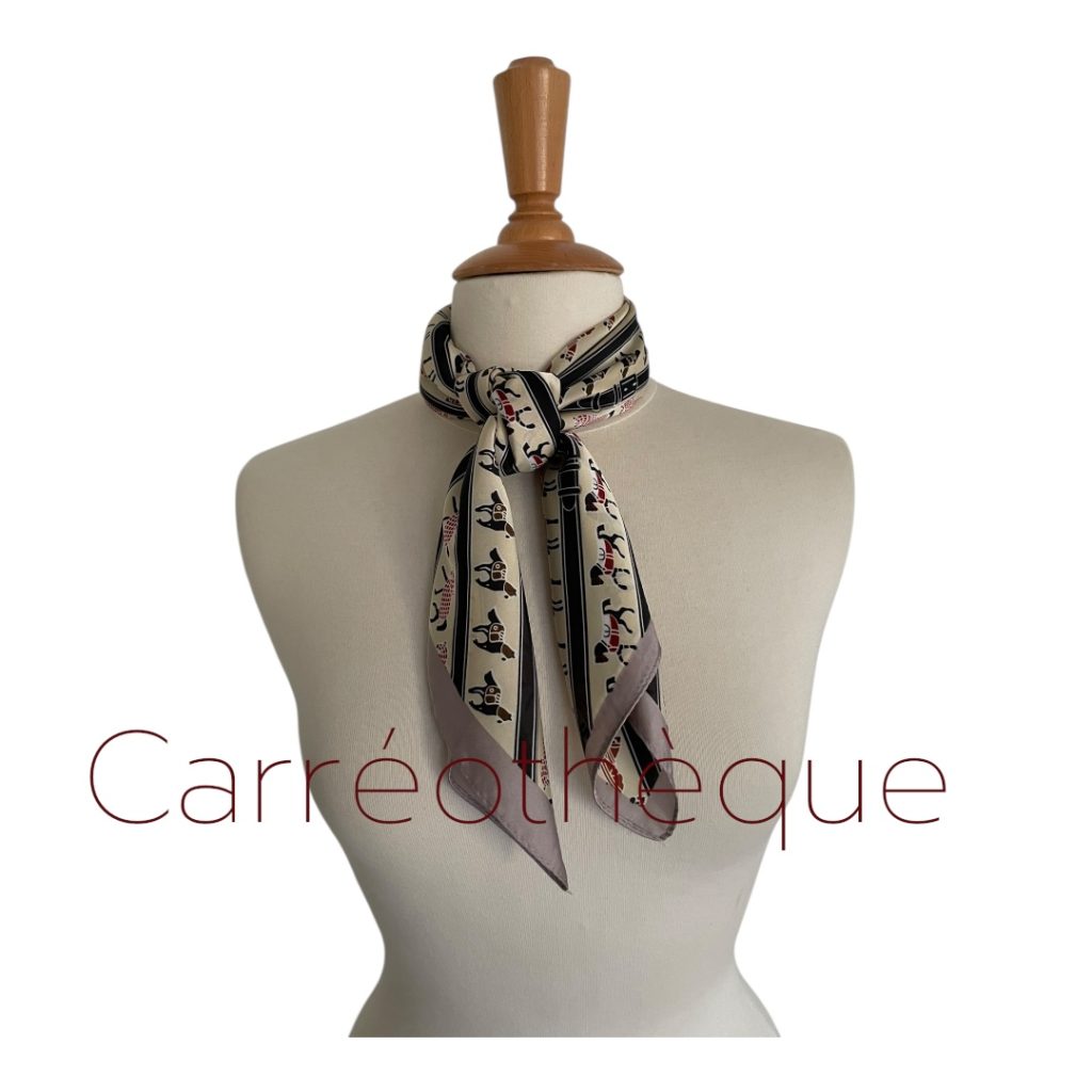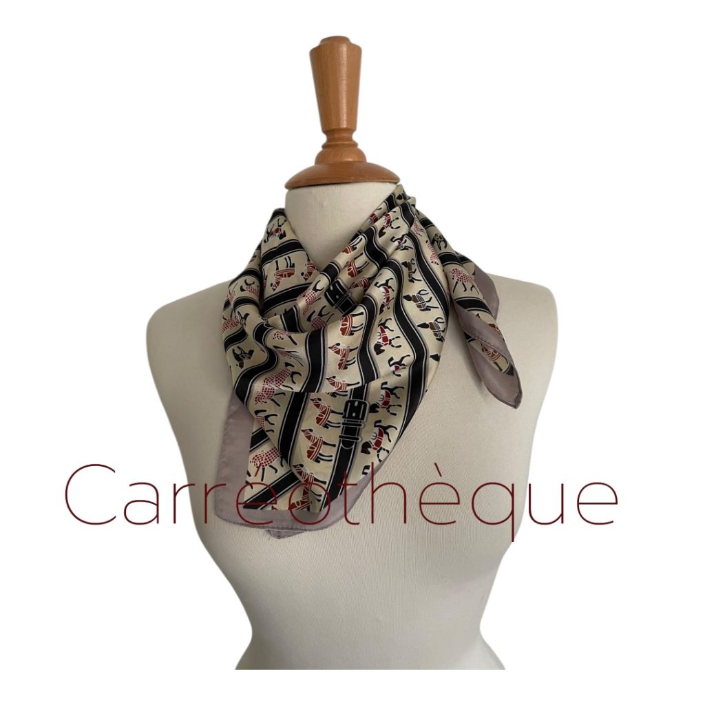 Carré 70 thème équestre de tradition avec des chevaux portant des couvertures de selles, classique élégant intemporel.
