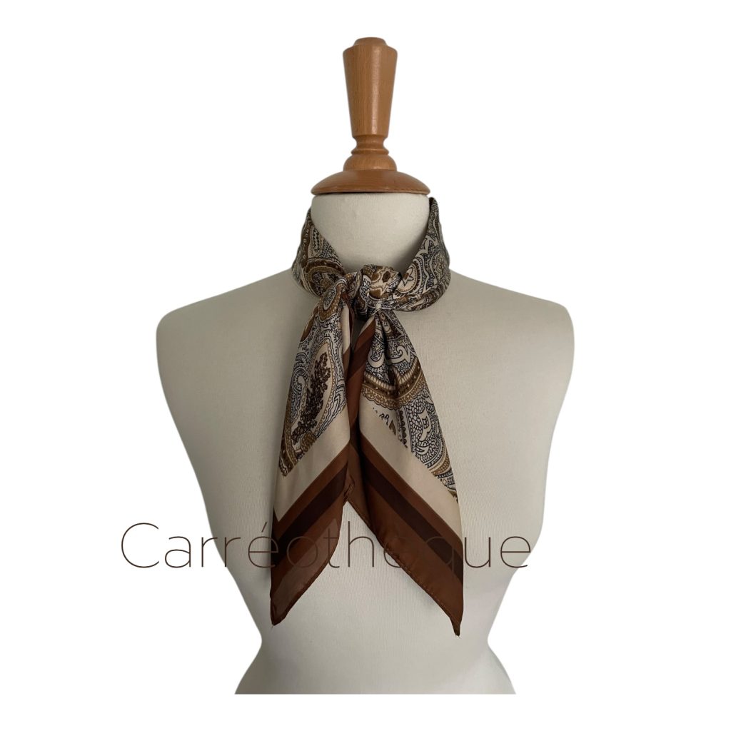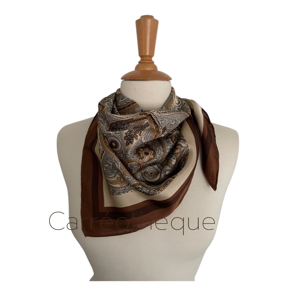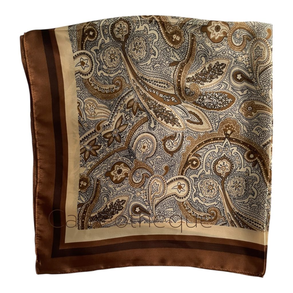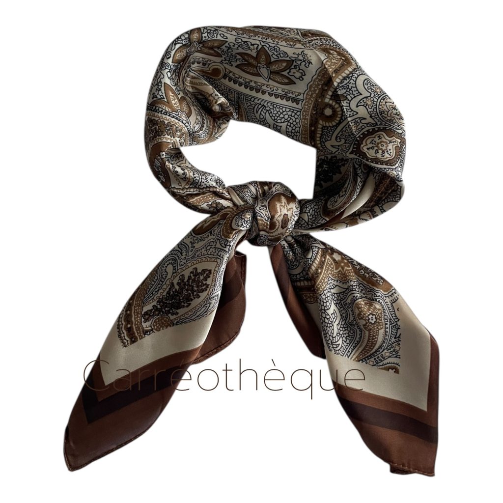 Carré 70 dessin fin cachemire marron brun élégant intemporel mixte.