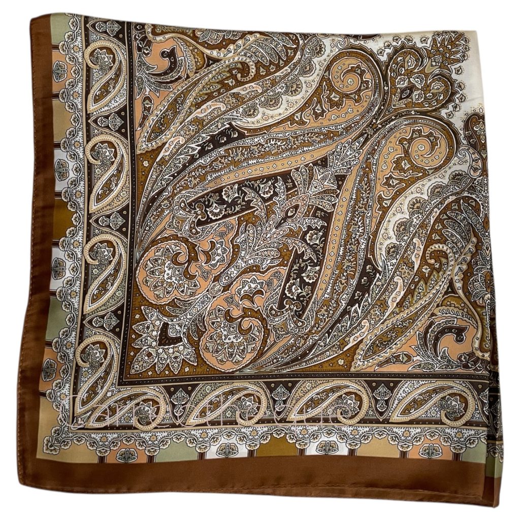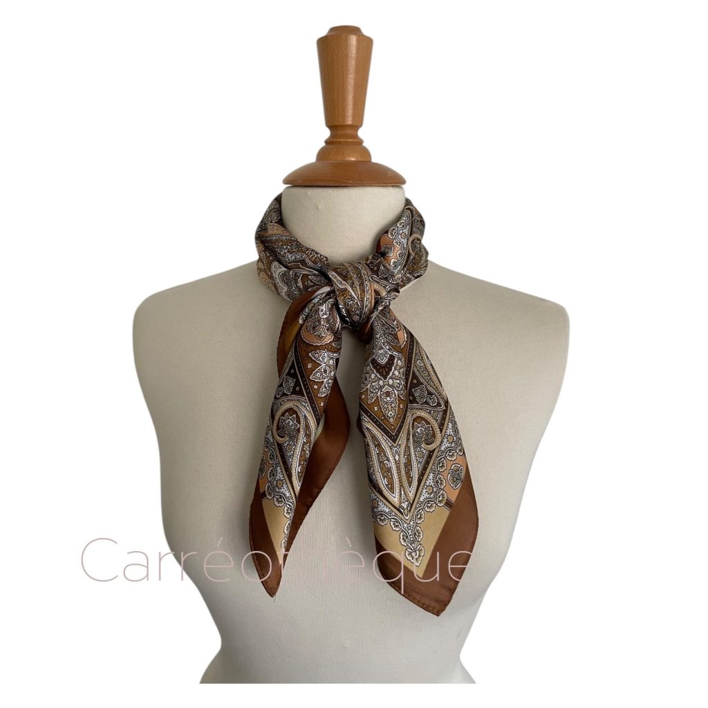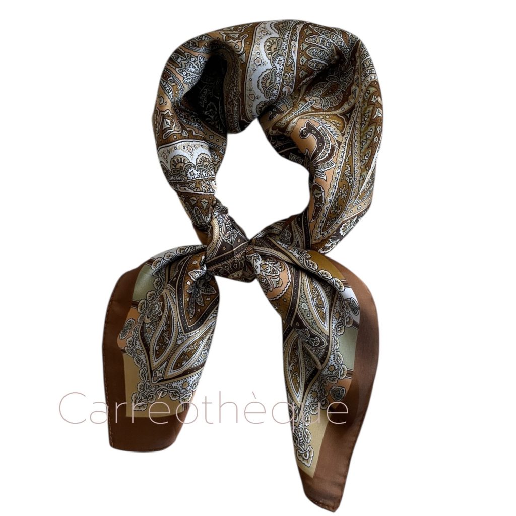 Carré 70 motif fin dessin cachemire marron élégant intemporel mixte.