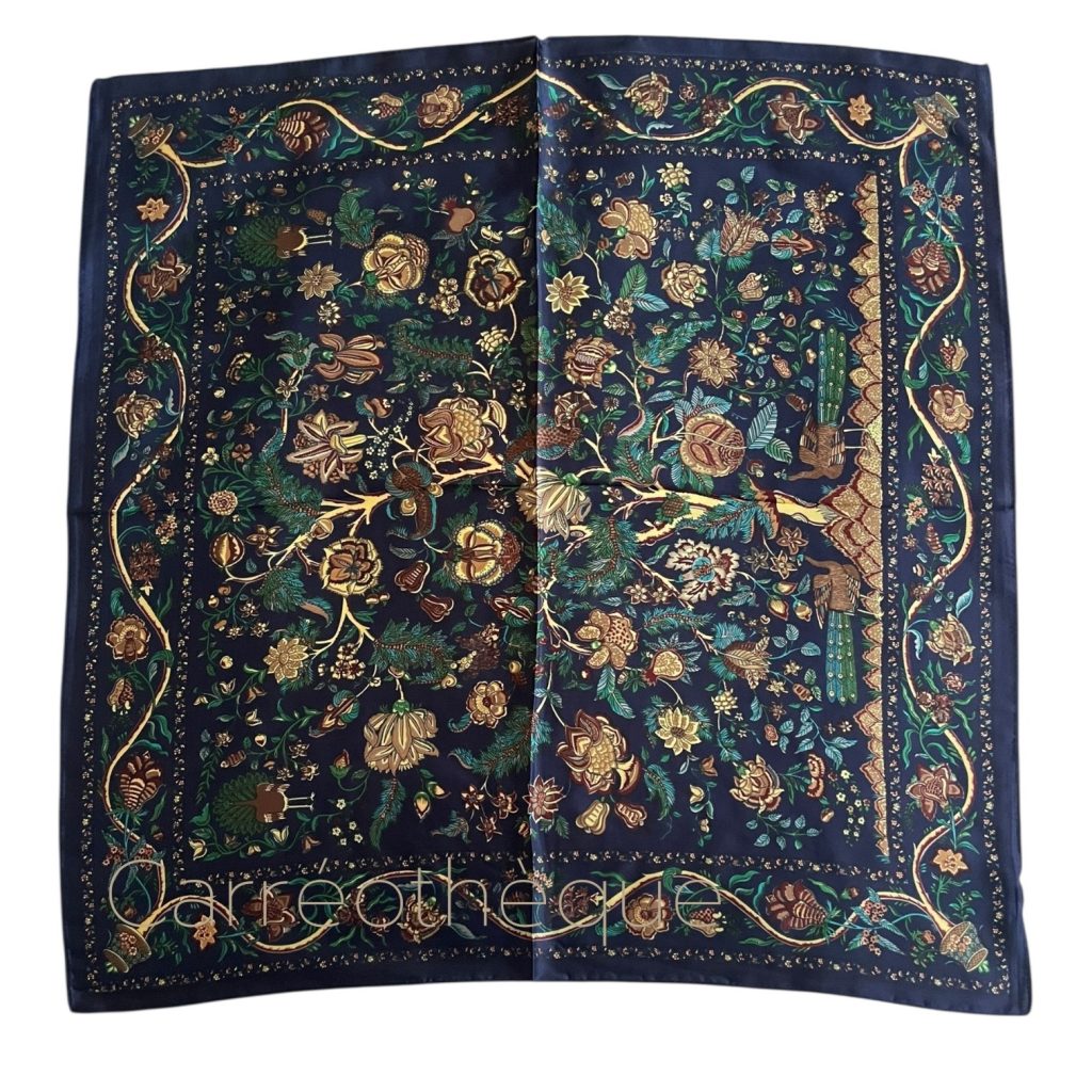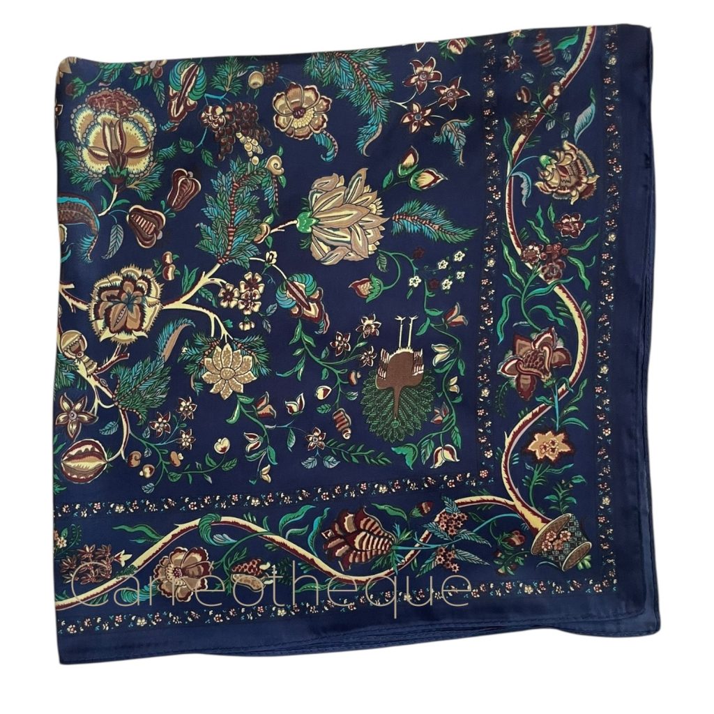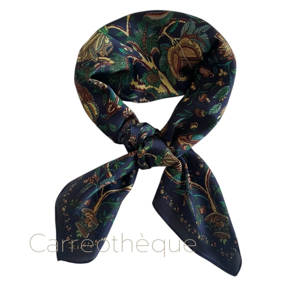 Carré 70 motif fleurs inspirées des dessin du cachemire provençal et oiseaux du paradis, paon contemporain et féminin.