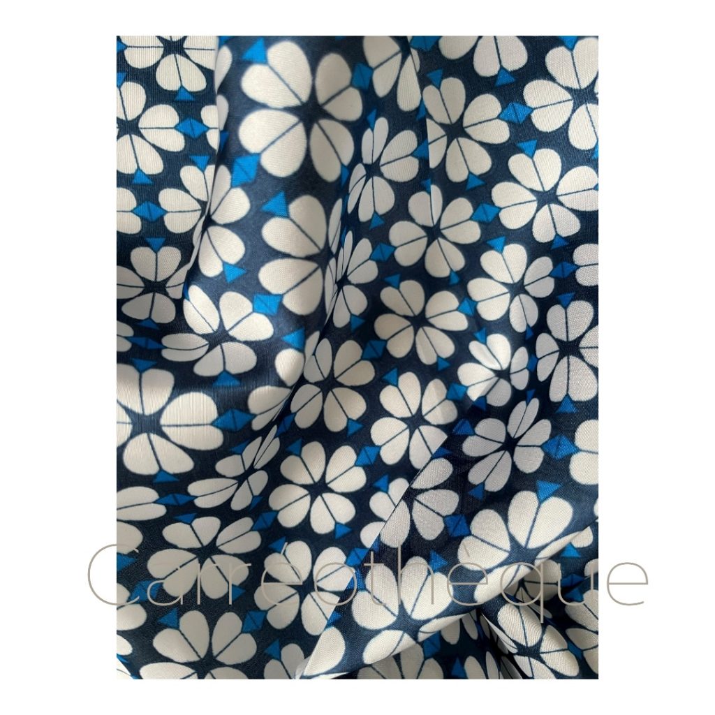 Conseils d’entretien: Lavage délicat à la main à l’eau froide à tempérée avec un détergent doux. Éponger sans tordre le tissu. Séchage à plat sans pli à l’air libre. Repassage à la vapeur à feu doux selon les préconisations de votre appareil.
