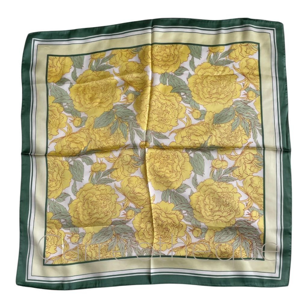 Carré 70x70cm fleurs pivoines jaune vert pastel