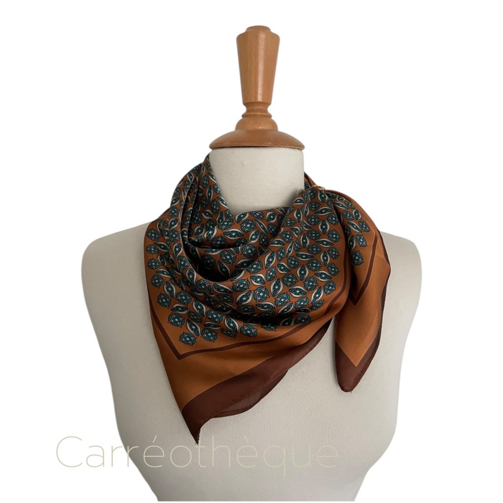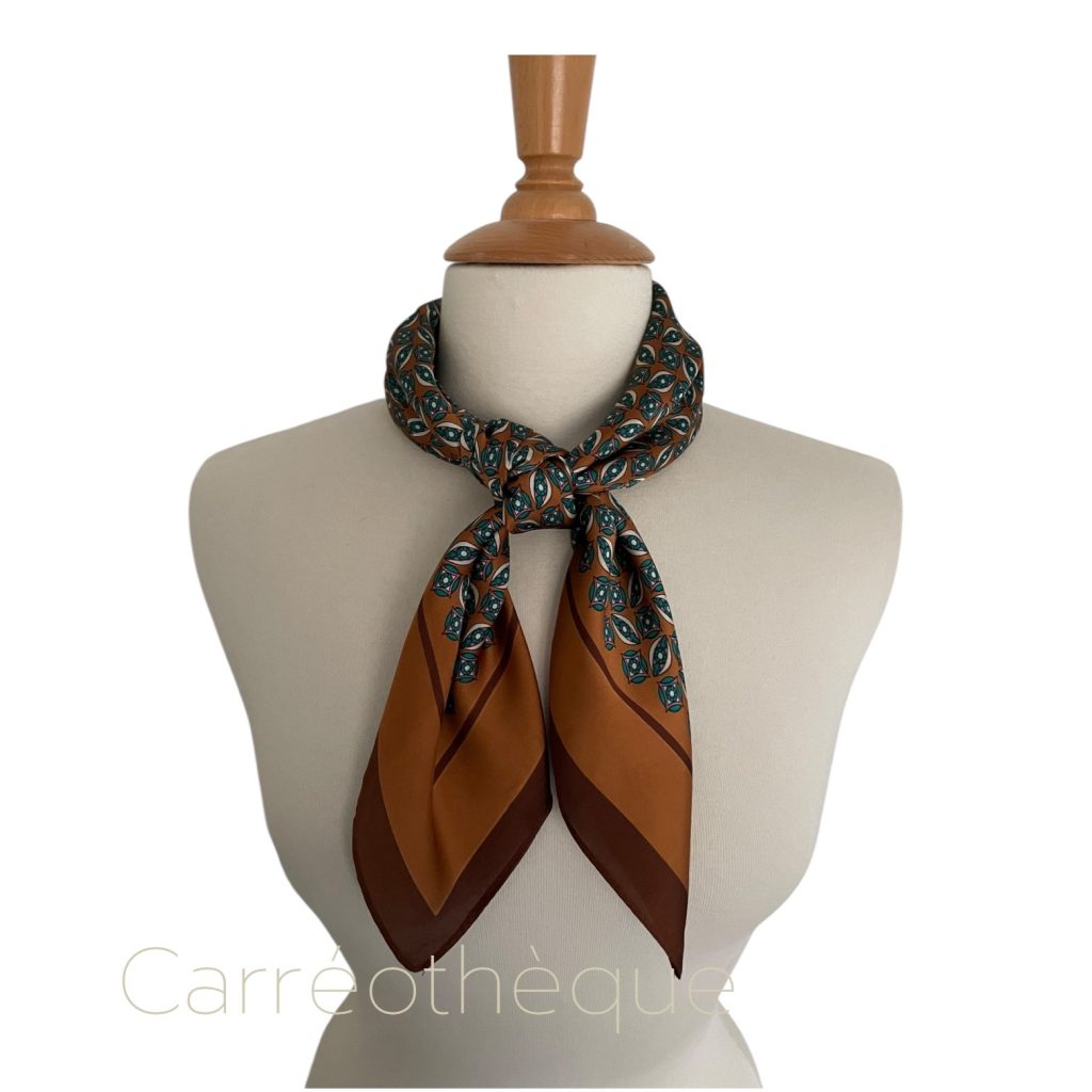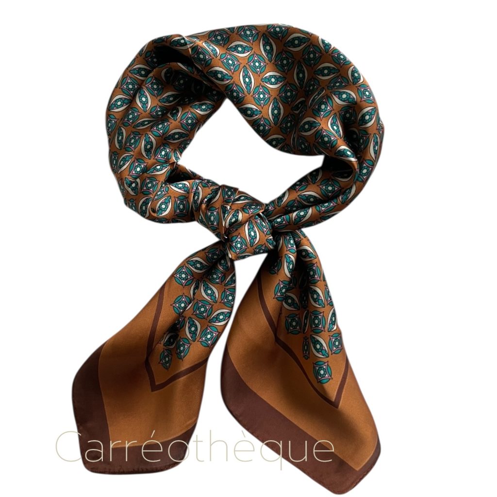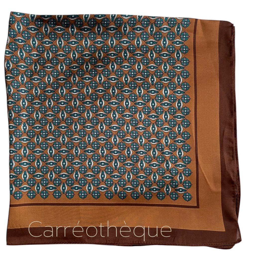 Carré 70 x 70cm petit motif cachemire marron chocolat, bleu turquoise avec une touche de rose élégant intemporel mixte.