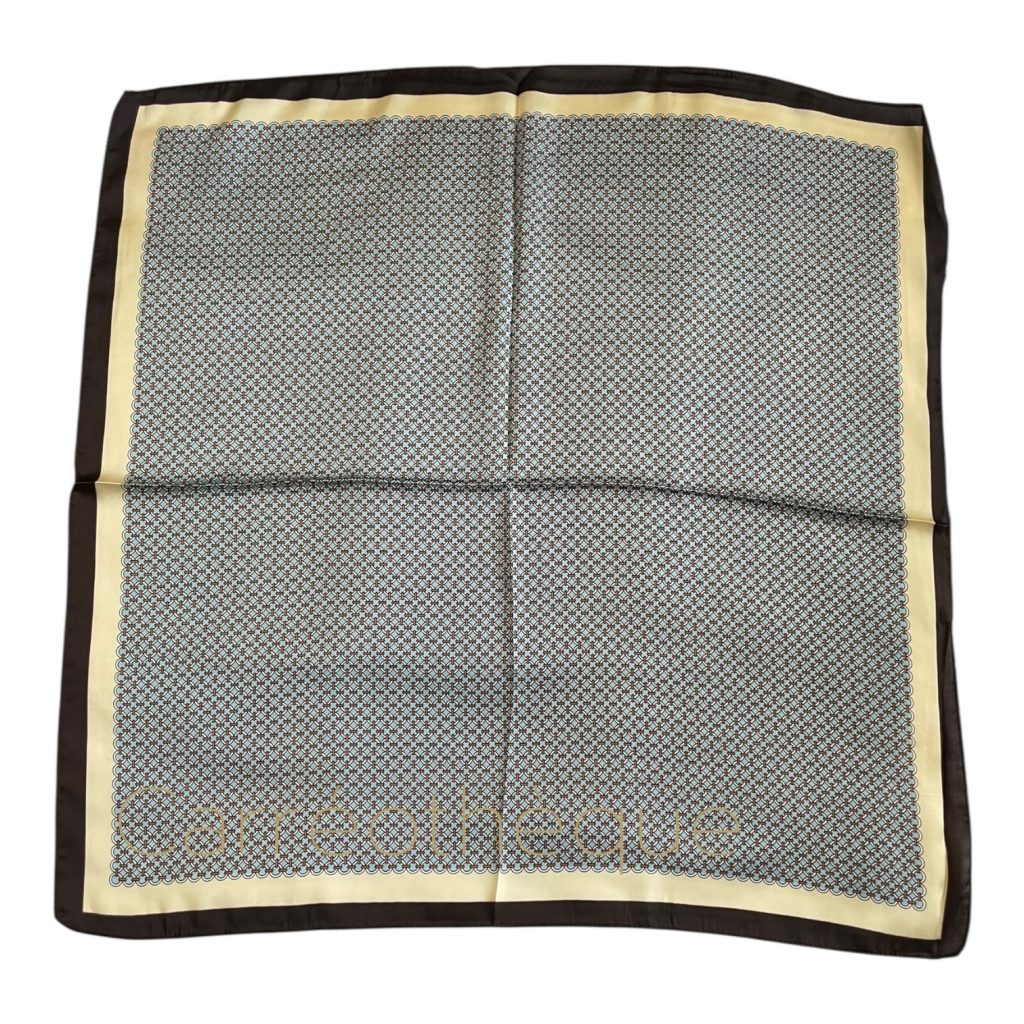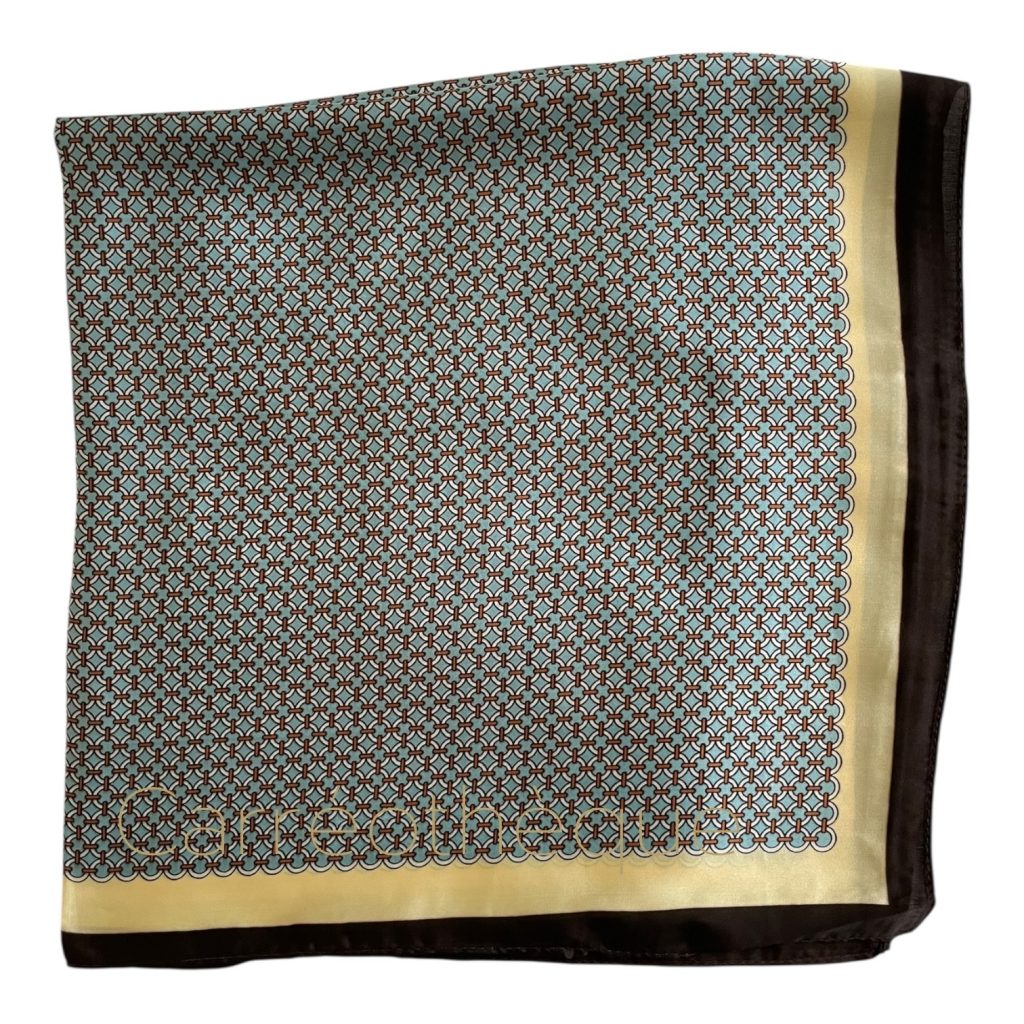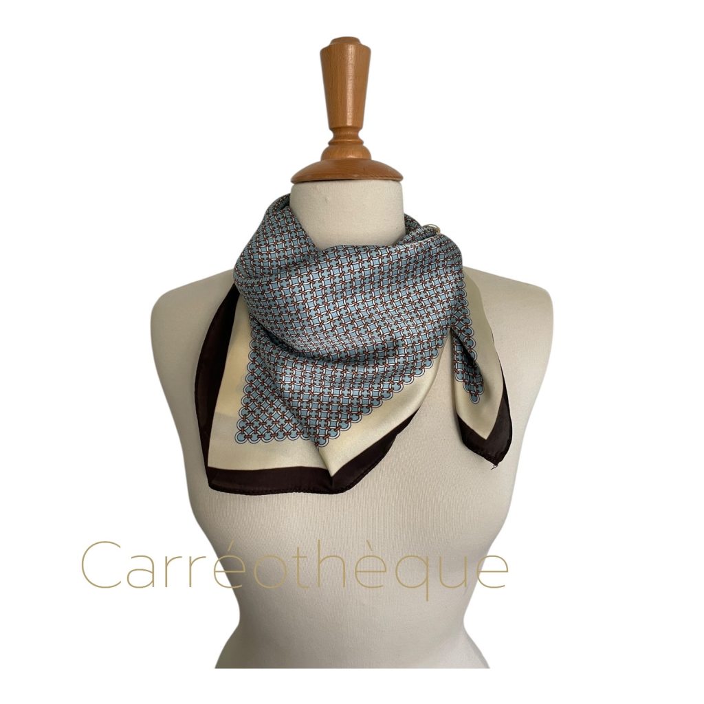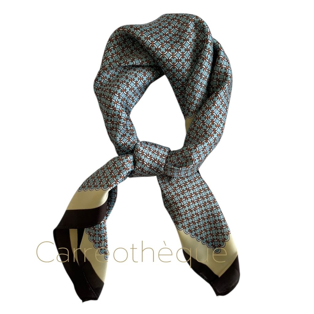 Carré 70 petit motif géométrique bleu pastel tour brun, classique minimaliste élégant, mixte.
