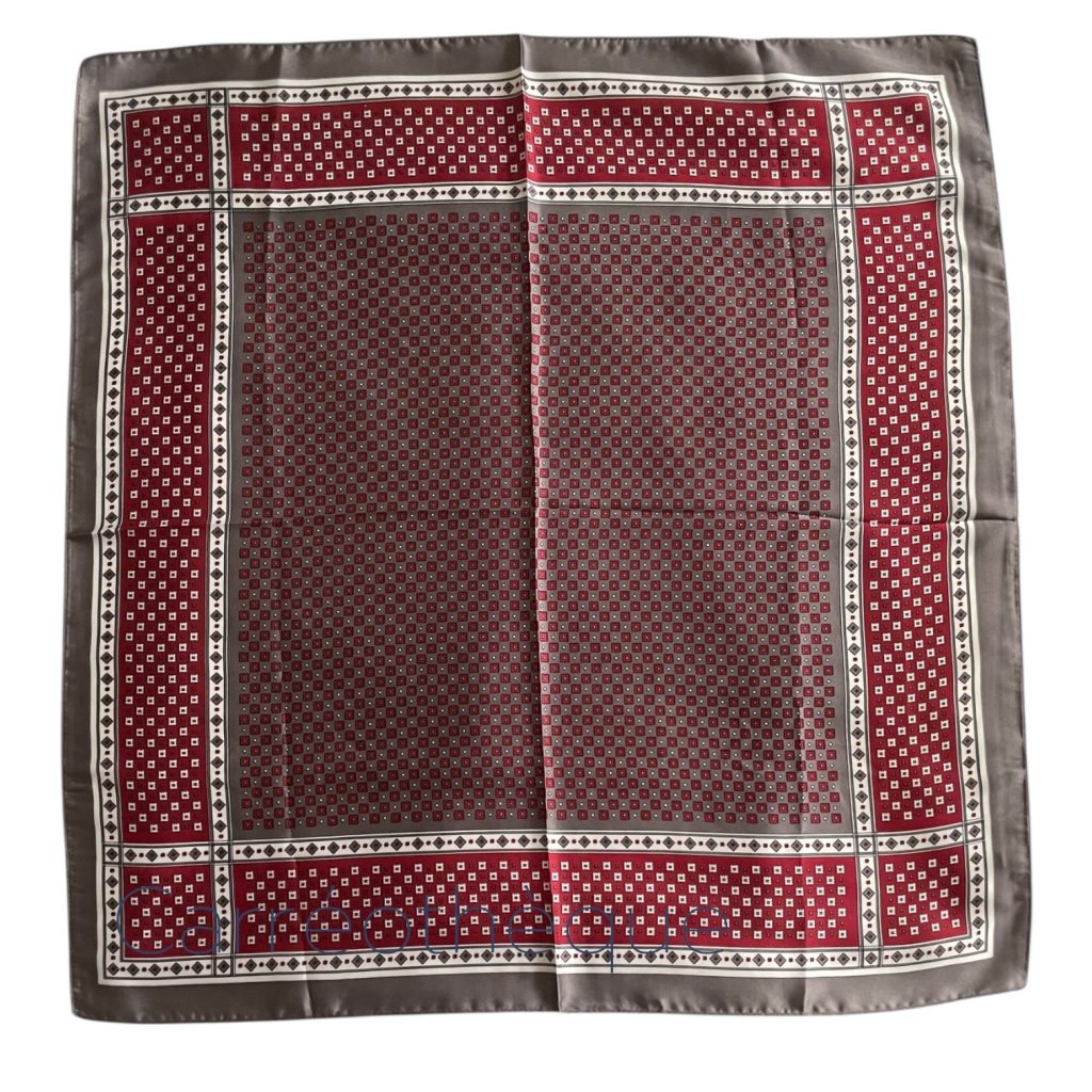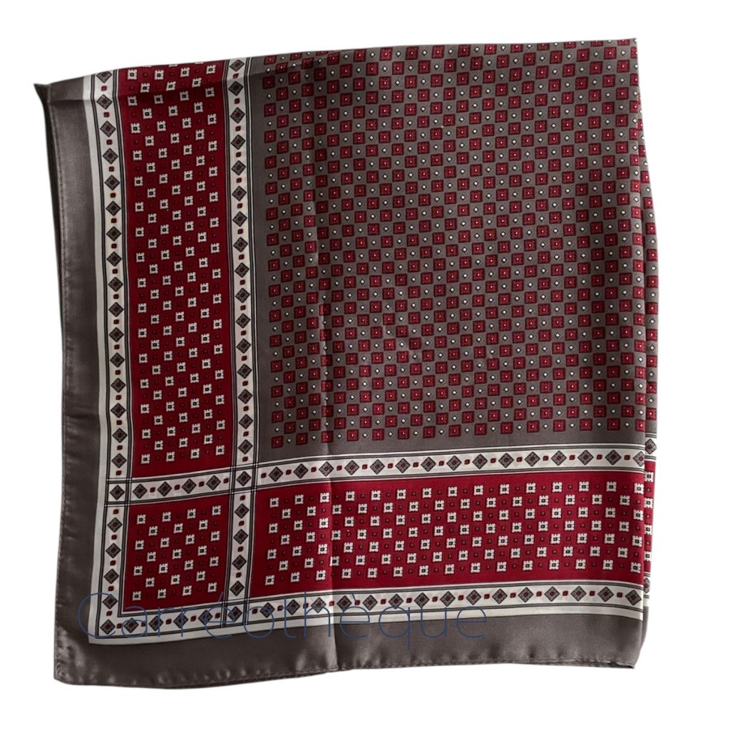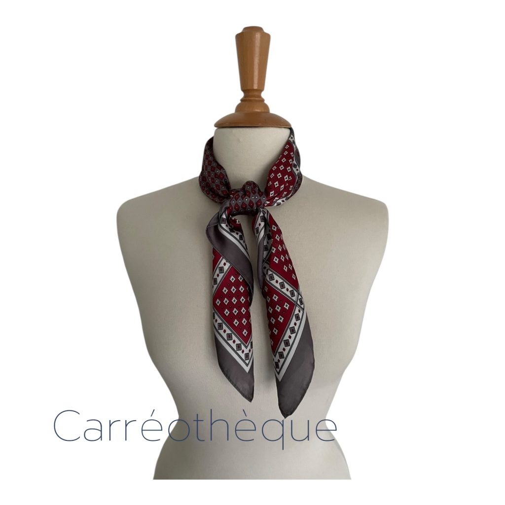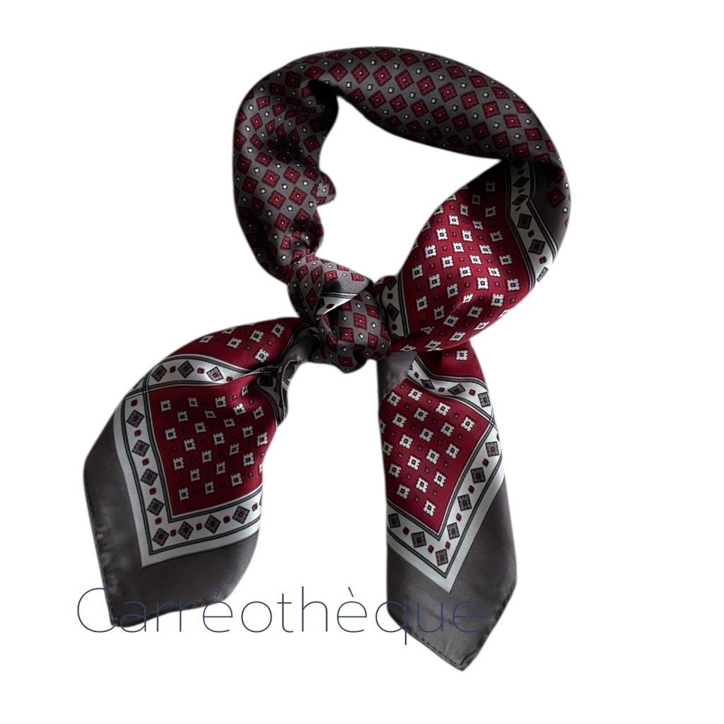 Carré 70 petit motif géométrique bordeaux gris, classique minimaliste élégant, mixte.
