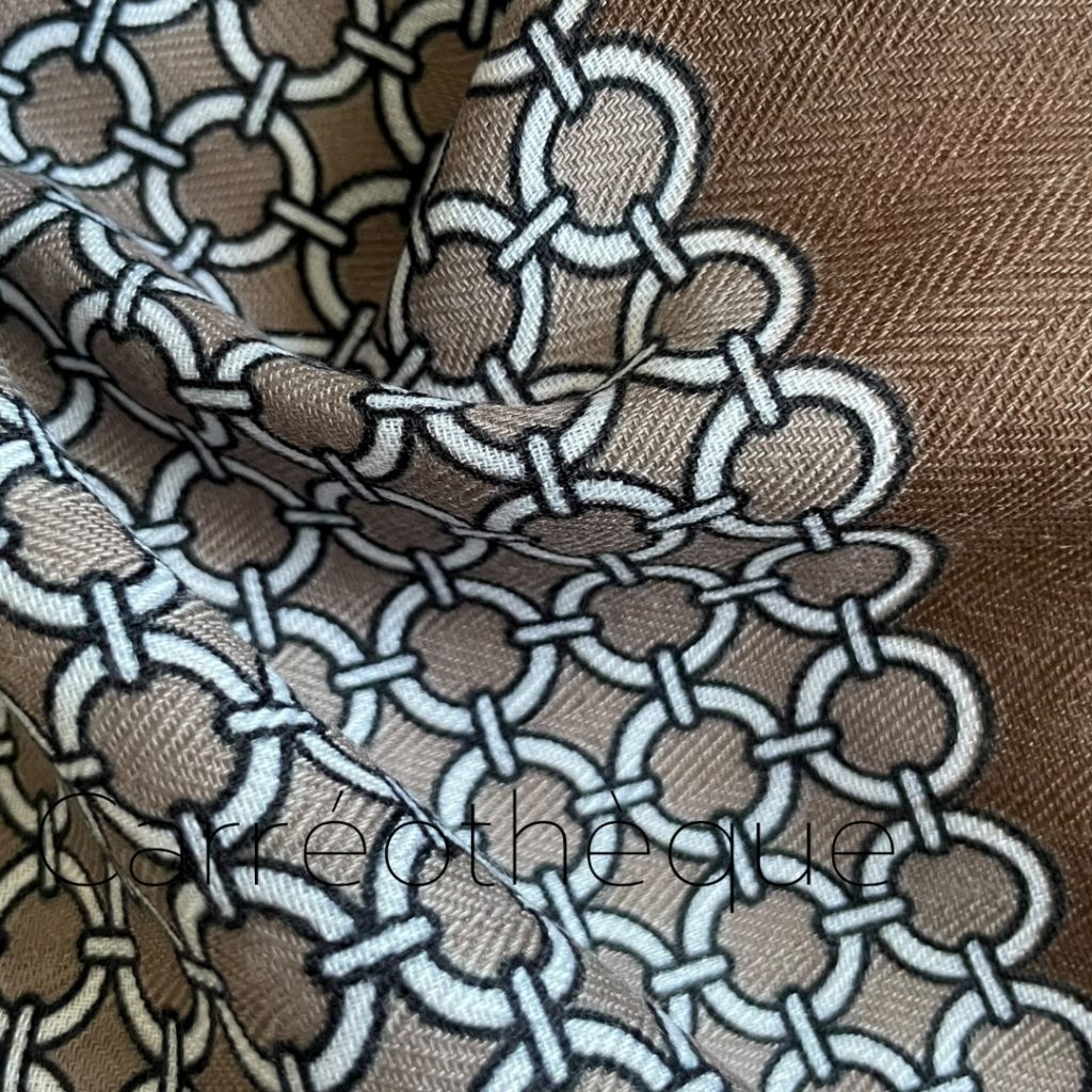 Carré 70 tweed tissage chevrons motif minimaliste et chic beige marron