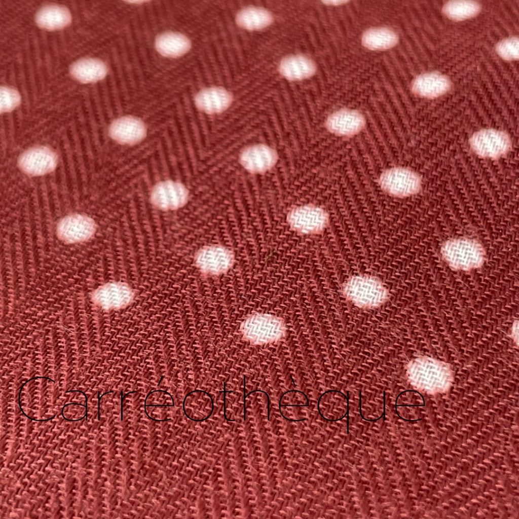 Carré 70 tweed tissage chevrons motif pois blanc sur fond bordeaux