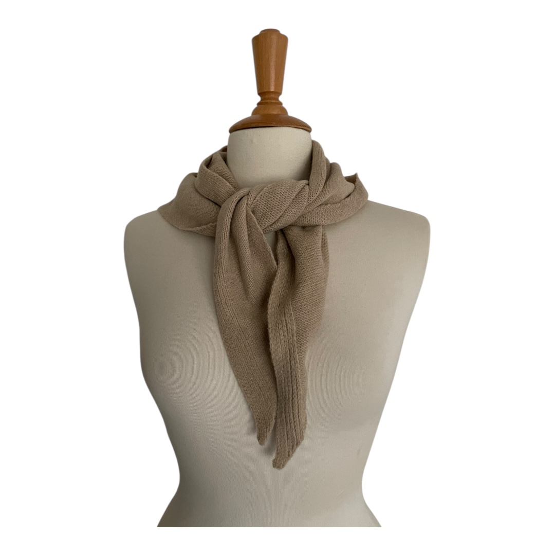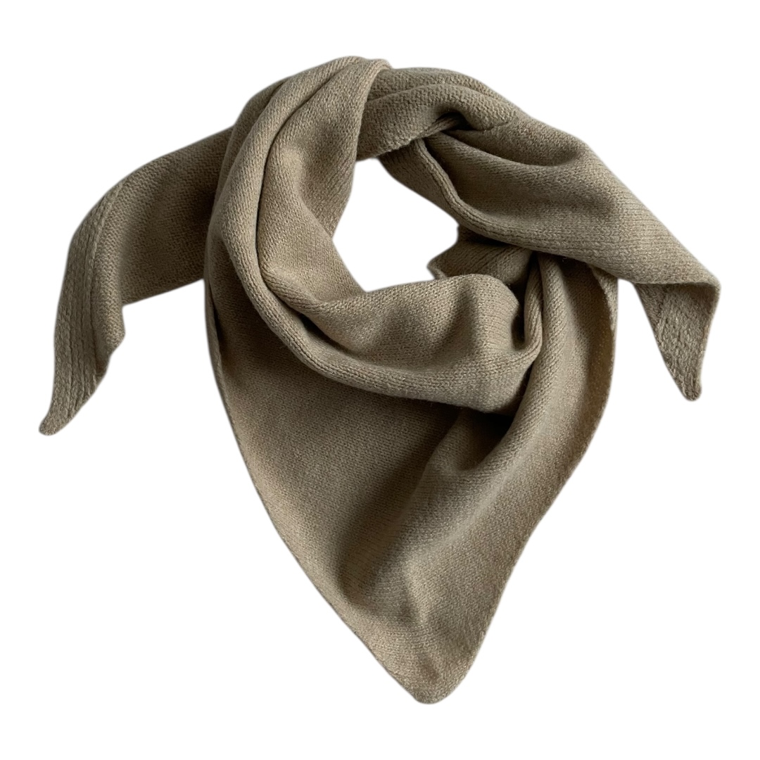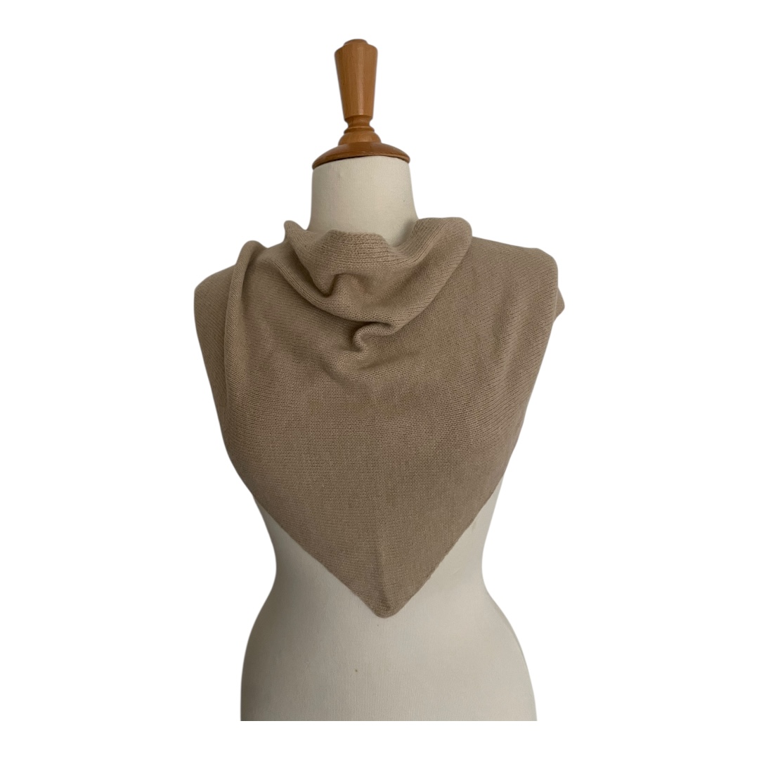 Écharpe châle triangle en laine coloris beige, doux et chaud, foulard triangulaire tricoté