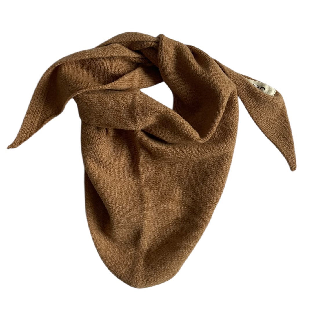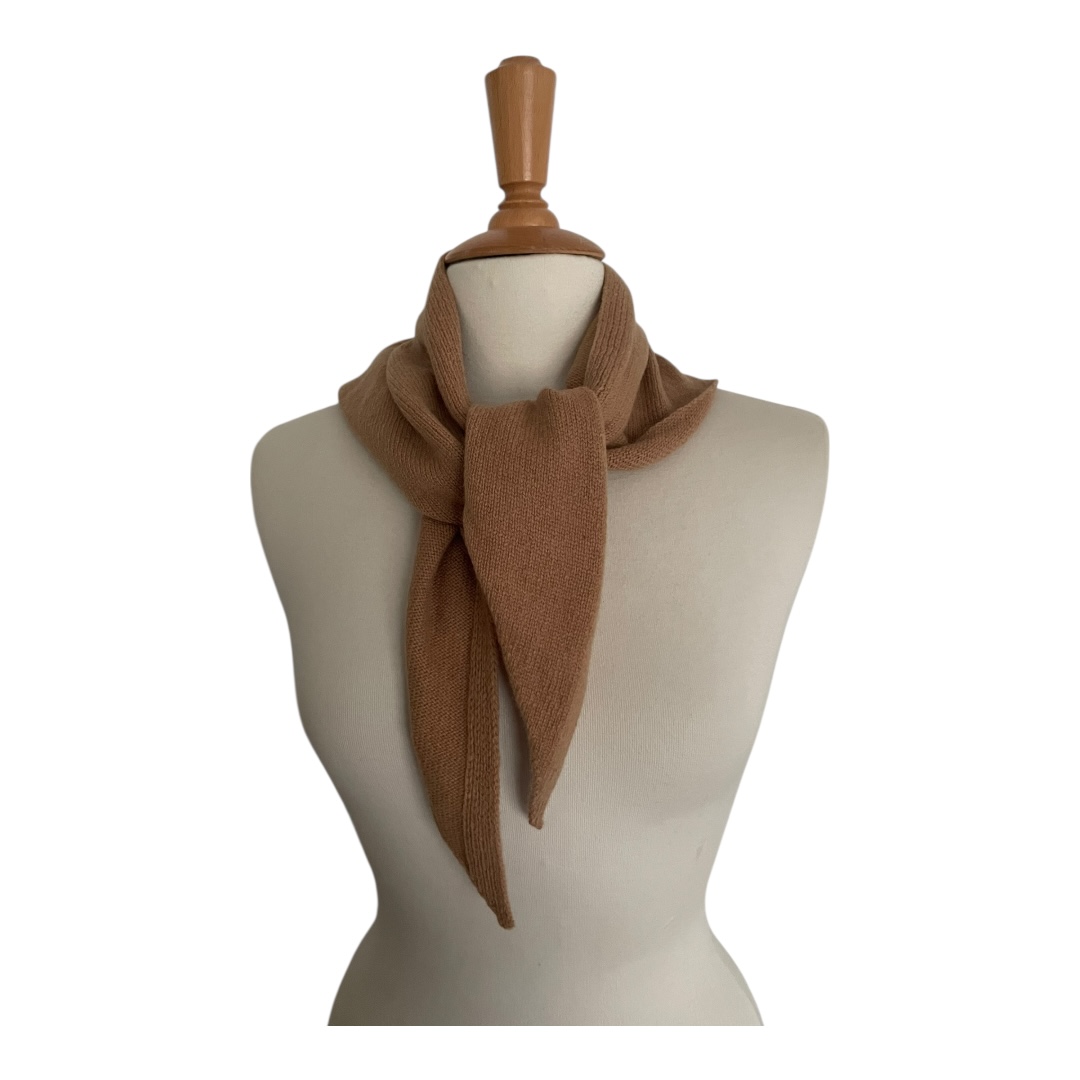 Écharpe triangle pure laine coloris camel, doux et chaud, foulard triangulaire tricoté